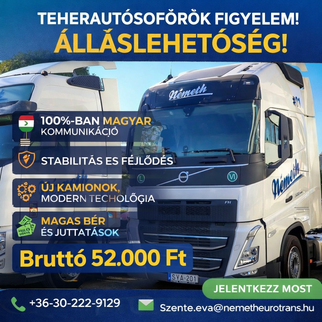 Ha a következő munkahelyedet keresed, most érdemes figyelned. A cégünknél új korszak kezdődött – megújult szemlélettel, fejlődő kommunikációval és hamarosan érkező új kamionokkal. Nem csak beszélünk a változásról, hanem valóban lépünk is.